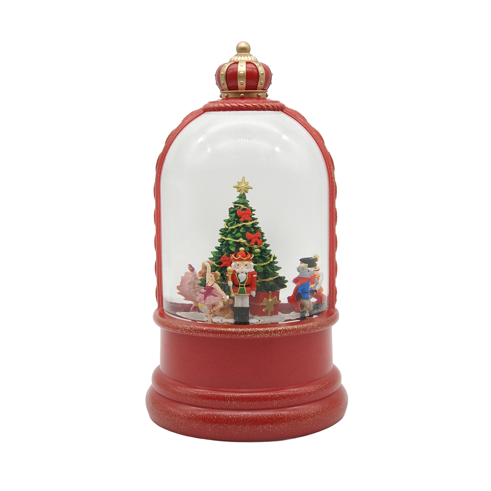 This delightful snow globe invites you into a world of cherished holiday memories, where the spirit of Christmas comes alive within its shimmering dome. The intricate scene captures a lovingly adorned tree, complete with a classic nutcracker and festive characters, all enveloped in a delicate, swirling snowfall that evokes the warmth of family traditions gathered around the hearth.