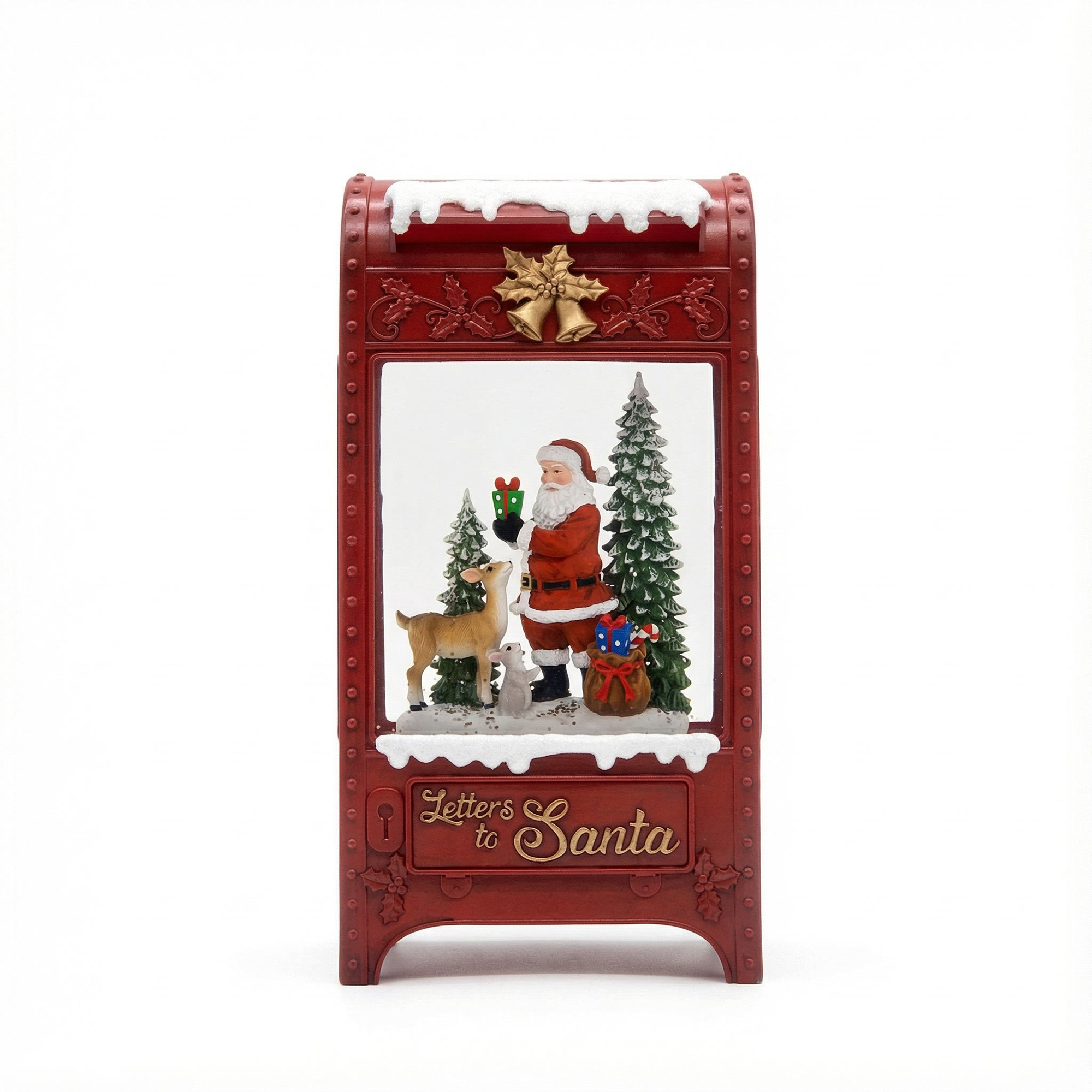 This charming letterbox, adorned in a festive red finish, captures the timeless spirit of Christmas. With intricate detailing, it showcases Santa alongside a playful deer and evergreen trees, inviting children to send their wishes directly to the North Pole. The sprinkle of snow across the top adds a touch of winter wonder, grounding the piece in cherished holiday traditions.