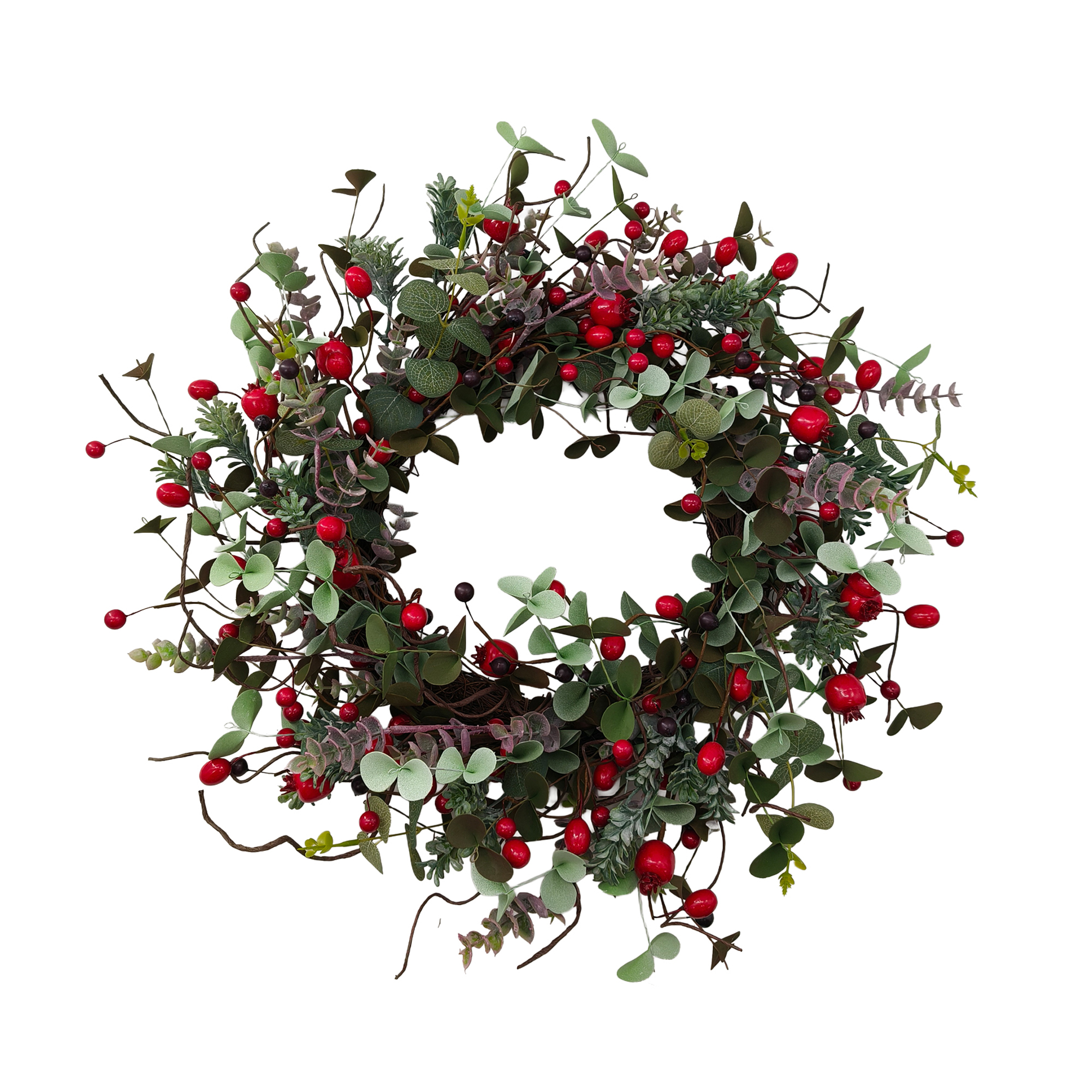 This charming wreath embodies the spirit of the season, delicately crafted with lifelike berries and lush eucalyptus. Its rustic charm recalls the warmth of family gatherings, inviting the essence of winter’s beauty into your home and evoking a timeless sense of togetherness during the holidays.