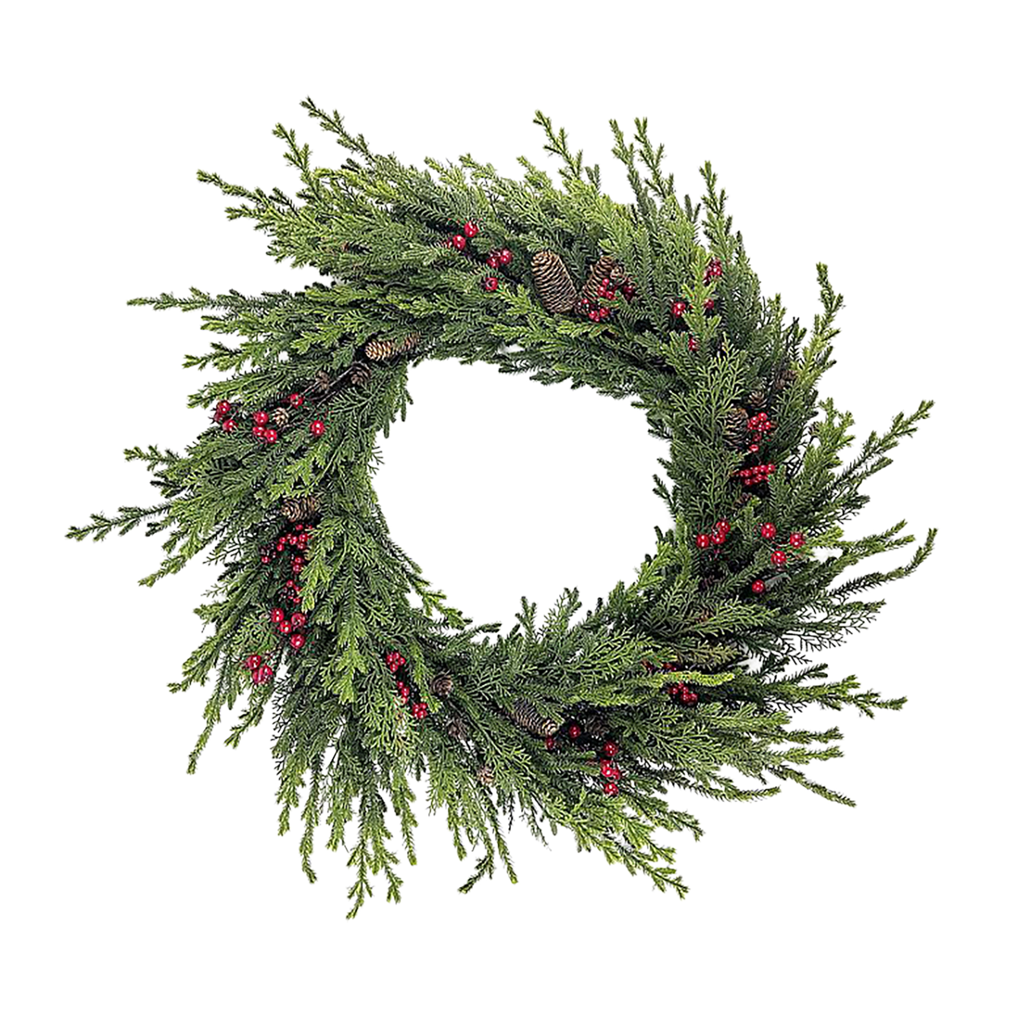 Crafted with care, this timeless wreath captures the spirit of the season with its lush greenery and vibrant red berries. Evoking memories of festive gatherings and holiday cheer, it brings a touch of nature indoors, celebrating the beauty of winter with every glance.